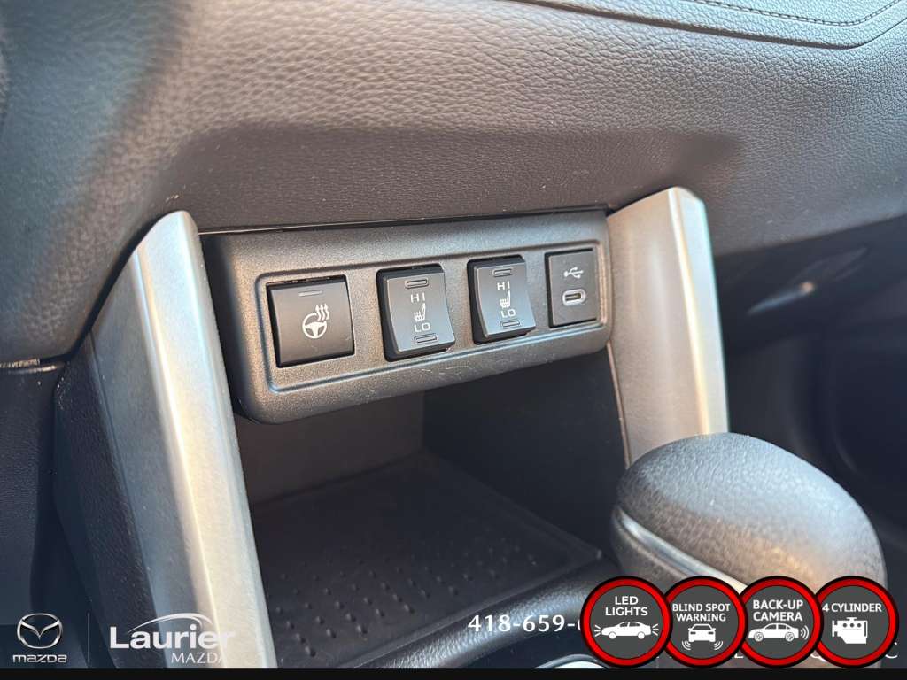 AM/FM StéréoBluetoothCaméra de ReculClimatisationCommandes de la radio au volantCompatibilité Android AutoCompatibilité Apple CarplayContrôle actif de la stabilitéDémarrage à bouton PoussoirEssuie-glace de lunette arrièreEssuie-glace intermittentFreinage antiblocage (ABS)Intérieur TissusJantes aluminiumMiroirs électriquesOrdinateur de routePhares automatiquesPort USBRégulateur de vitesseSièges chauffantsTraction IntégraleVerrouillage électriqueVitres électriquesVolant ajustableVolant chauffant